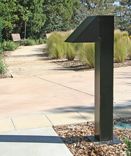 The B-919 from the Borden Lighting collection is a bollard version of the classic wedge 719 sconce. A formed aluminum housing and cast aluminum backplate contribute to its small but sturdy constuction. A high-transmission clear refractive acrylic lens maximizes output and distribution. Full cutoff and low glare also make it dark-sky friendly!